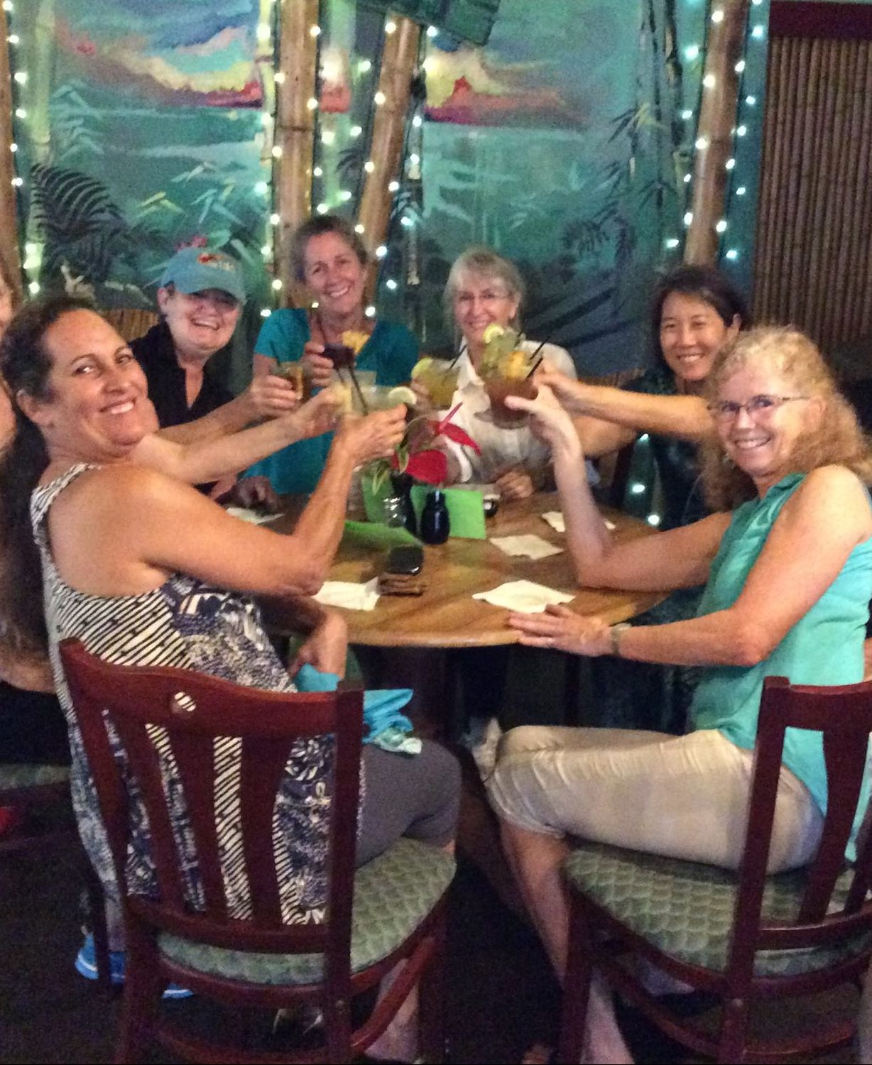 12079989_1049347105100182_7796576640356872193_o4:30pm – This is where things get interesting. You can join Dave Egan for a little “woodshedding” (again, new for this year) or, depending on the night of the week, you can stroll into town and check out happy hour at Bamboo and try one of their world-famous lilikoi mai tais before dinner. DSC00159On another evening, we will all be piling into cars and heading down to Kapa’a Beach Park for a fabulous ukulele beach barbecue accompanied by authentic, live Hawaiian music as the sun sets slowly in the West. IMG_0726On a different evening we will be getting dressed up to go to the Blue Dragon in Kawaihai for slightly more formal music and an elegant and delicious dinner. It’s all good. No, it’s better than good. Way better. And by the time the sun has set on the horizon, everyone is ready for bed.
