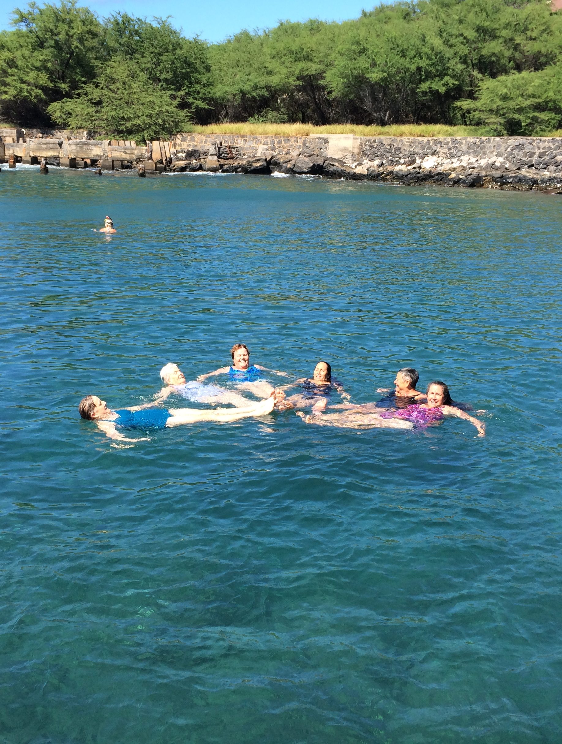 IMG_0596After lunch – There’s a little time to relax, explore the town, or jump into a car and head down to Mahukona Beach Park, which is not technically a “beach” (there is no sand or crashing surf), but it’s a great place to jump off the dock or climb down the ladder and go for a swim in your very own aquarium. And don’t forget your snorkel gear!  There will be tropical fish by the hundreds swimming with you in the crystal clear water! This can become a daily ritual, or a once in a lifetime treat.